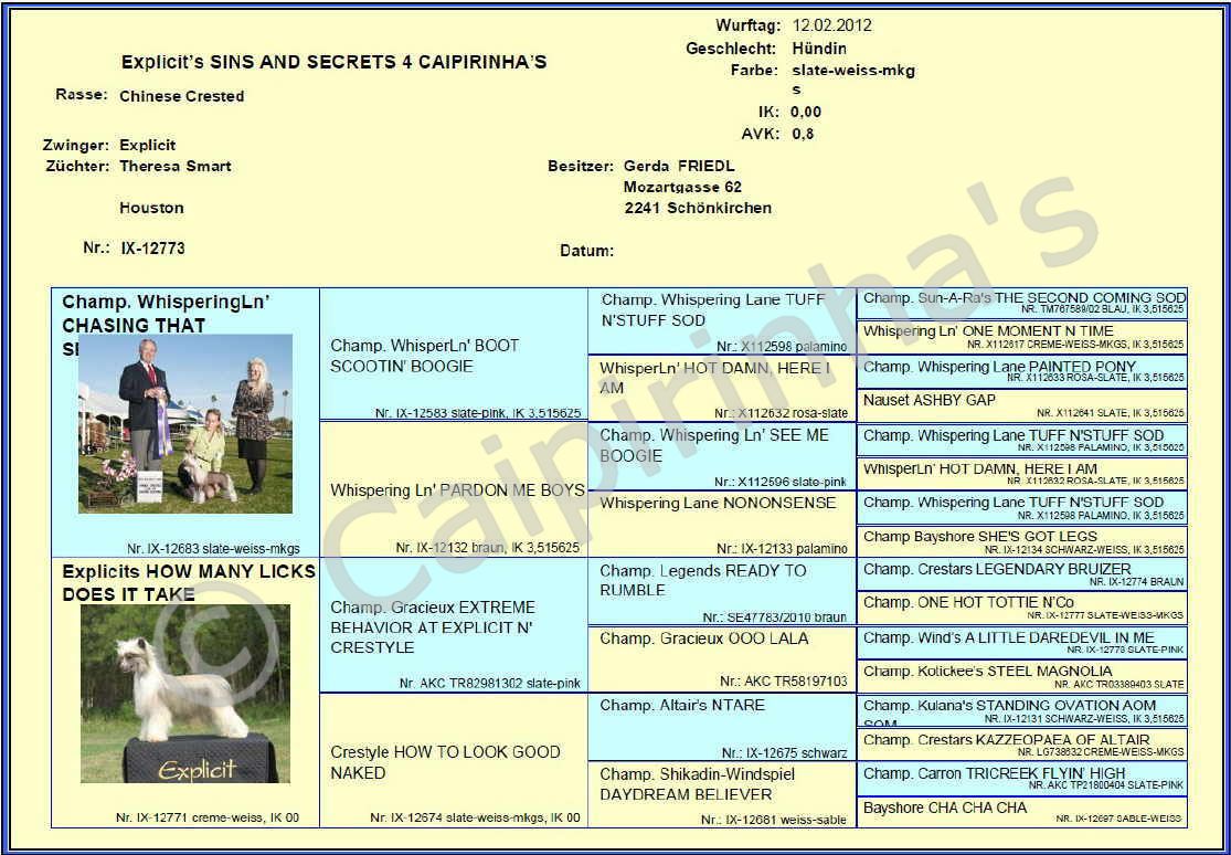 - CIB Multi-Champ. von Shinbashi HIGH PROVOCATION (Champ. Whispering Lane LAST MAN STANDING x Caipirinha's NEEDLESS 2SAY) - Ahnentafel
