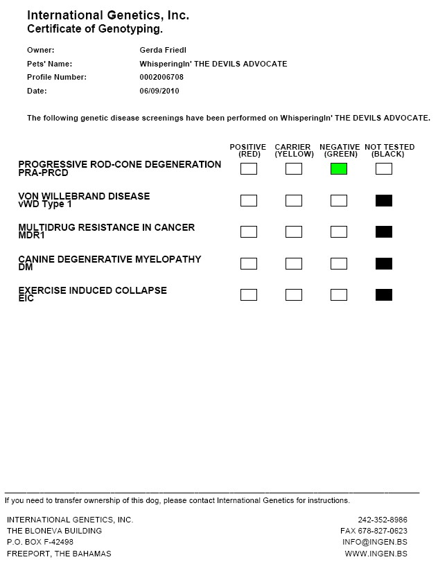 - 10.06.2010 - Keanu ist prcd-PRA normal/frei (Zertifikat)