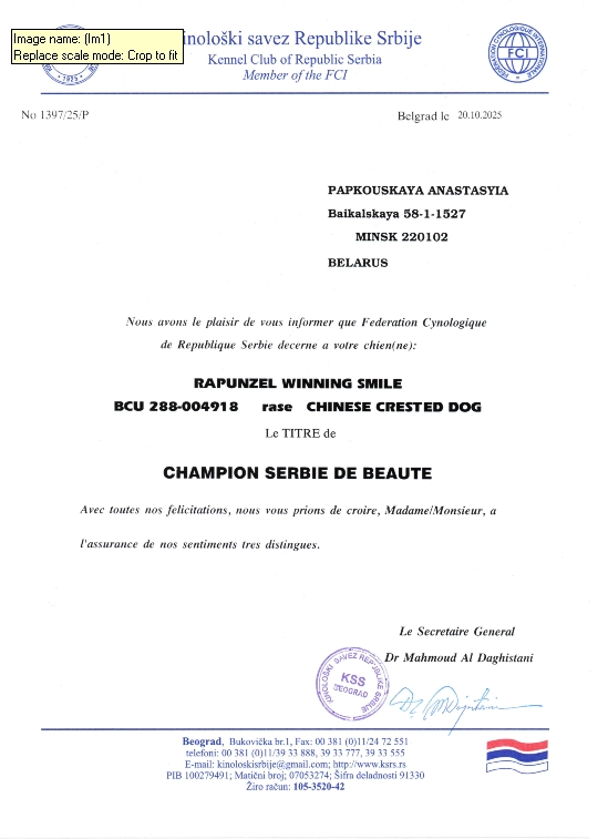 vp1 class winner Best powderpuff Puppy and Res. BISS Puppy |